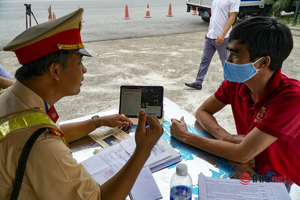 Tại đây, các chiến sĩ CSGT được trang bị máy tính hiển thị đầy đủ thông tin, hình ảnh về phương tiện, sai phạm và thời điểm mắc sai phạm để xử lý.
